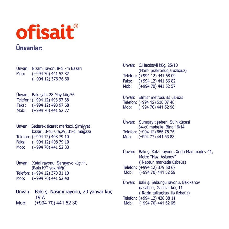 Fevralın 12-dən Martın 25-dək Ofisait mağazalar şəbəkəsində bütün məhsullara 15% ENDİRİM, seçilmiş məhsullara isə 30% ENDİRİM olunacaq. Bu fürsətdən siz də fafdalanın!
