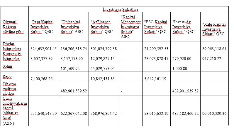 Birja üzvü olan investisiya şirkətlərinin dövriyyələri açıqlandı