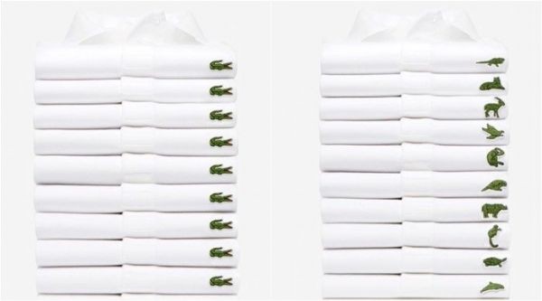Fransanın dünya şöhrətli geyim markası Lacoste, nəsli kəsilməkdə olan heyvanlara diqqət çəkmək üçün geyimlərin üzərində yerləşən timsah loqosunun əvəzinə nəsli kəsilməkdə olan heyvanları əks etdirən loqolar verib.