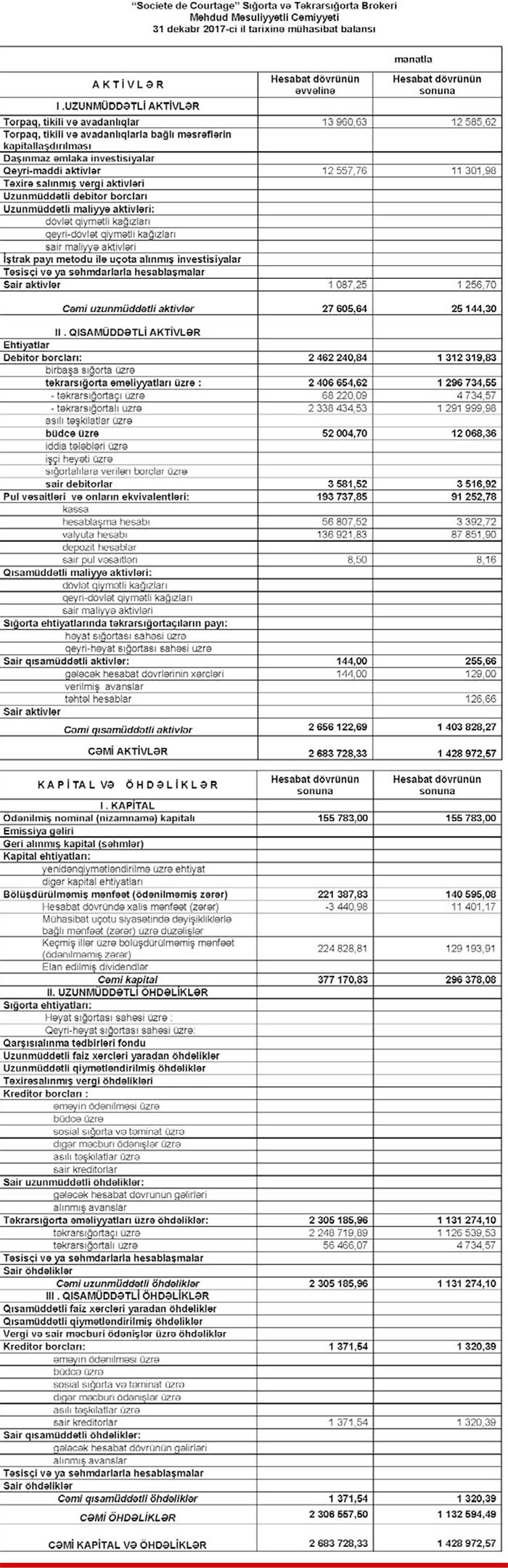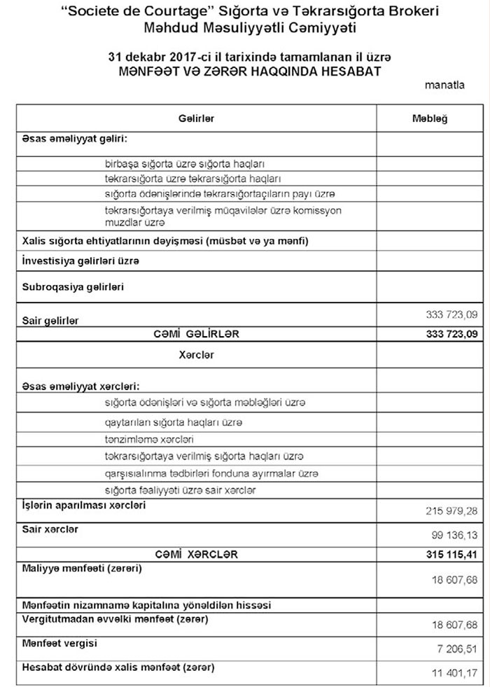 “Societe de Courtage” Sığorta və Təkrarsığorta Brokeri MMC 2017-ci ili 11,4 min manat xalis mənfəətlə başa vurub.