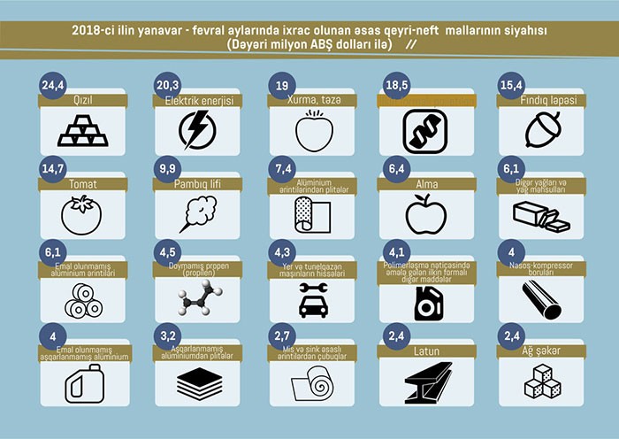 2017-ci il ərzində ixrac olunan qeyri-neft sektoru məhsulları arasında pomidor birinci yeri tutmuşdu (151.6 milyon ABŞ dolları).