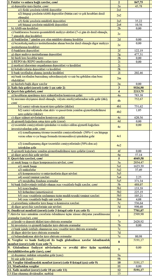 “AFB Bank” aktivlər üzrə mümkün zərərlərin ödənilməsi üçün xüsusi ehtiyatın yaradılmasına 30 milyon 6 min manat ayırdığından ötən ili 12 milyon 185 min manat zərər ilə bağlamışdı.
