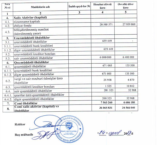 Hesabat dövründə şirkətin öhdəlikləri 14,5% artaraq 7 milyon 563,260 min manat olub.