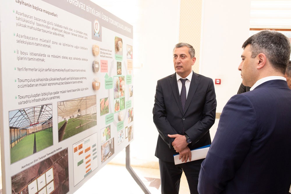 Nazir İnam Kərimov Tərəvəzçilik Elmi-Tədqiqat İnstitutuna (TETİ) gələrək İnstitutun yeni inzibati binasına və laboratoriyalarına, İsrailin “Breedit” şirkətinin layihəsi əsasında TETİ-də 6.14 ha ərazidə qurulan müasir istixana və 30 ha açıq sahə şəraitində beynəlxalq tələblərə uyğun olaraq tikilməkdə olan tərəvəz toxum istehsalı ərazilərinə baxış keçirib.