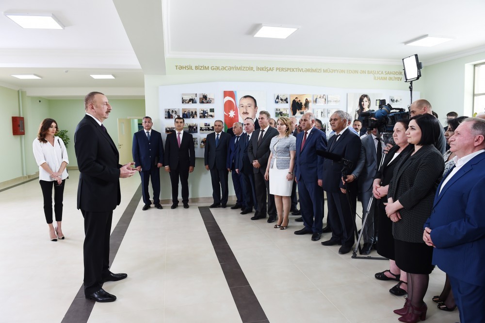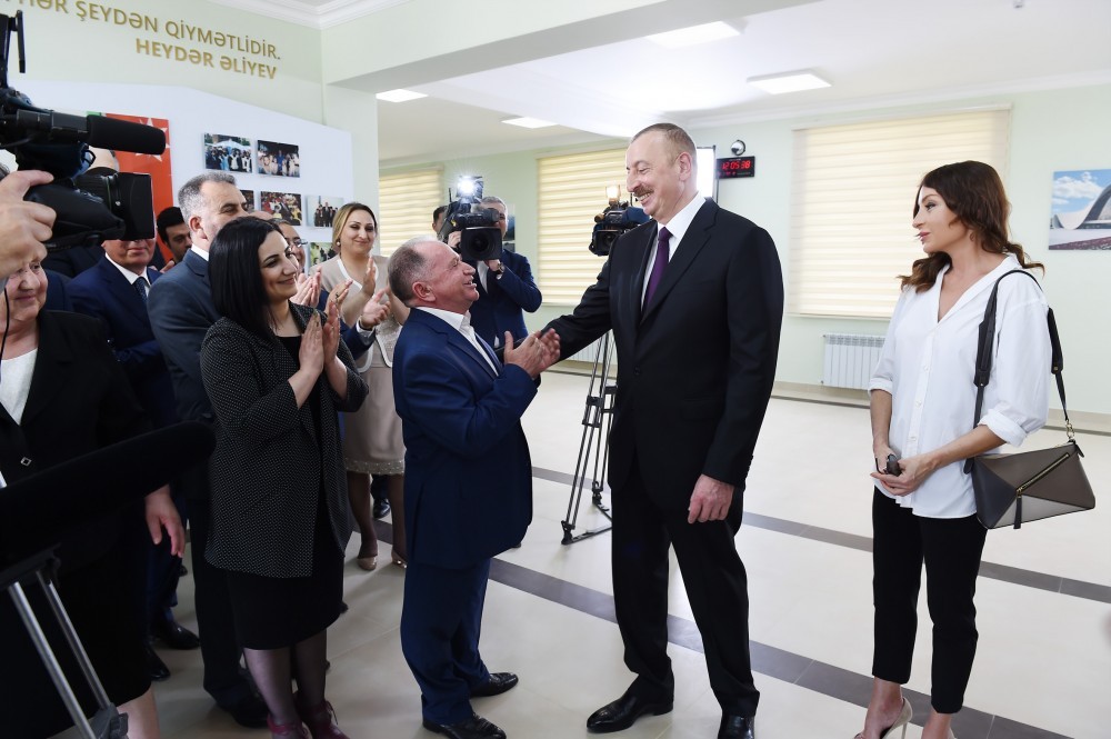 Prezident İlham Əliyev və xanımı Mehriban Əliyeva 32 nömrəli köçkün tam orta məktəbində yaradılan şəraitlə də tanış oldular.
