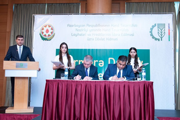 Kənd Təsərrüfatı Nazirliyi yanında Kənd Təsərrüfatı Layihələri və Kreditlərinin İdarə edilməsi üzrə Dövlət Xidmətinin təşkilatçılığı ilə fermer və kənd təsərrüfatı məhsulları istehsal edən sahibkarlara güzəştli kreditlərin verilməsi sahəsində şəffaflığı təmin etmək məqsədilə bir sıra bank və bank olmayan təşkilatlarla niyət protokollarının imzalanma mərasimi keçirilib.