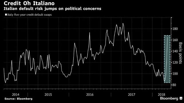 İtaliya istiqrazlarının defoltu riski (borcların vaxtında ödənməməsi riski) keçən həftə 40 bənd yüksəlib. Bloomberg-in araşdırmasına görə, bu rəqəm 2012-ci ildən bəri ən böyük artımdır. Səbəb Cənubi Avropa ölkəsindəki siyasi qeyri-müəyyənlikdir.