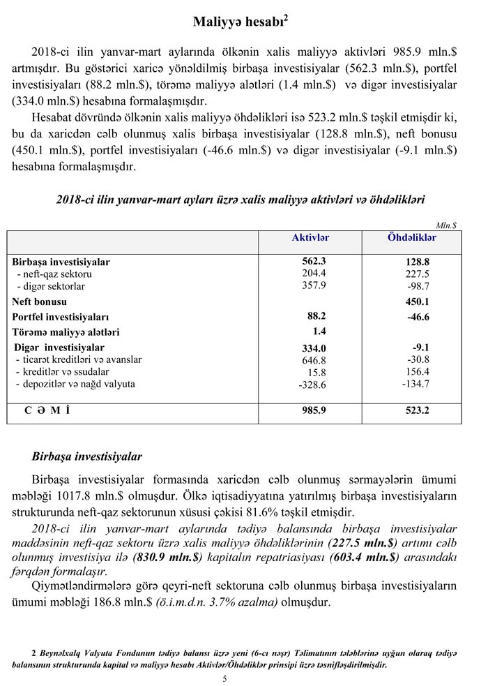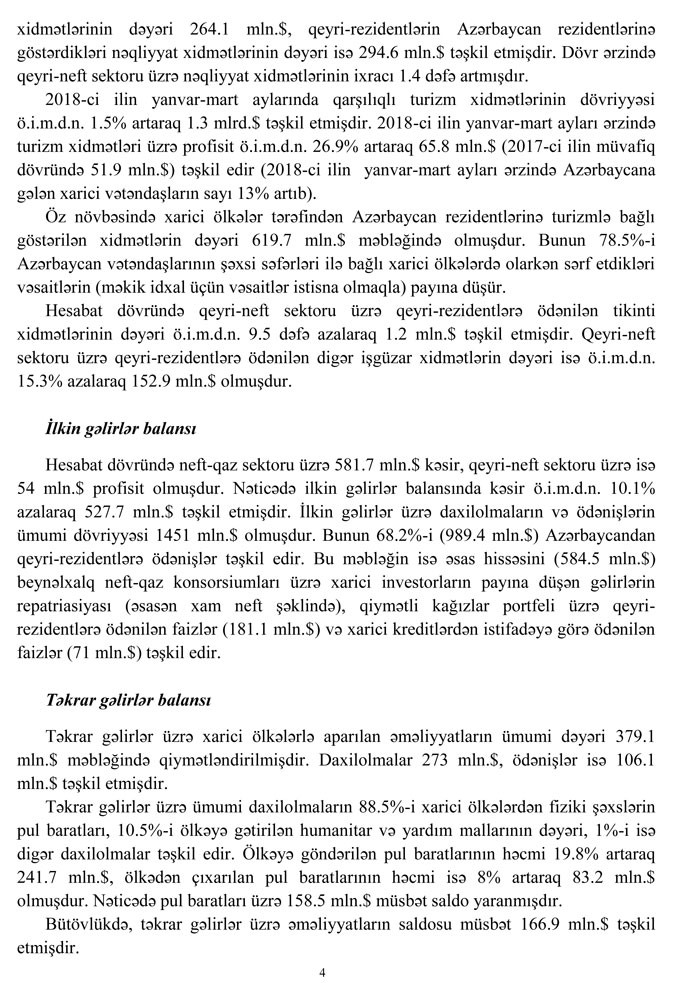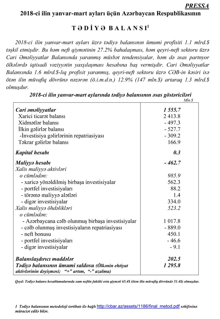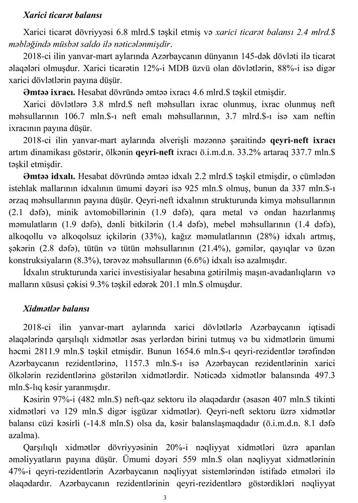 2018-in ilk rübününü tədiyyə balansı açıqlandı