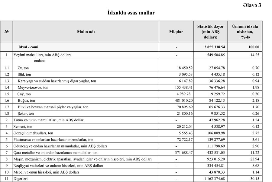Azərbaycanın ən çox idxal və ixrac etdiyi mallar