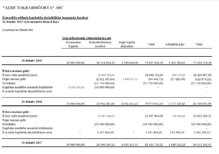 Azərbaycanın ilk təkrarsığorta şirkəti "AzRe Təkrarsığorta" ASC 2017-ci il üzrə konsolidə edilmiş maliyyə hesabatını açıqlayıb.