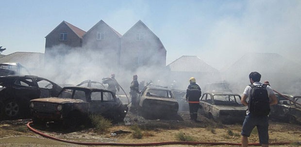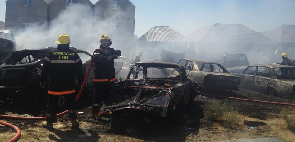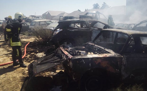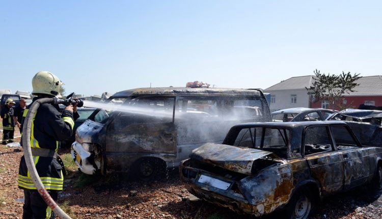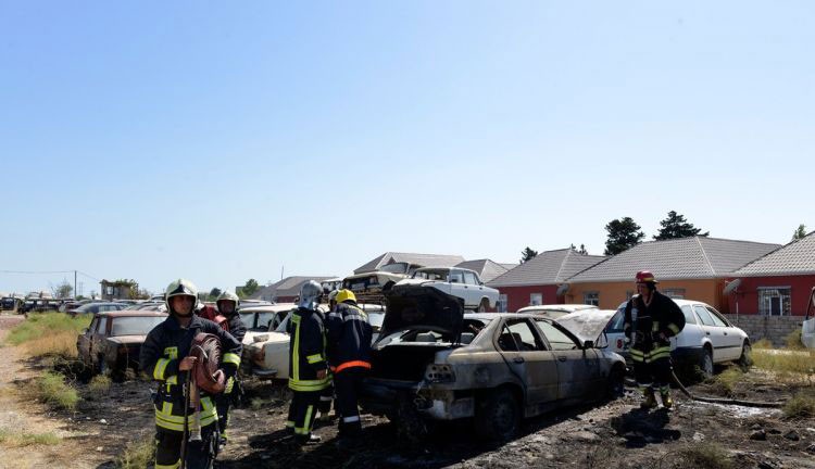 Məlumata görə, yanan avtomobillər qəzaya uğramış və istismara yararsız maşınlardır.