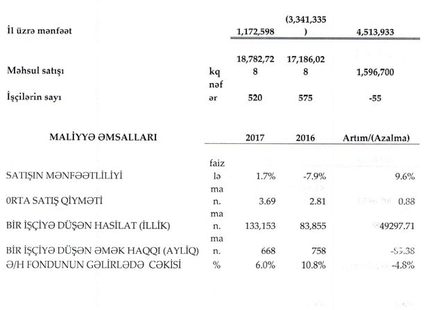 "Marja" ASC-nin maliyyə hesabatına istinadən xəbər verir ki, 2016-ci ildə 48 milyon 216 min manat olmuş cəmi satışlar 2017-ci ildə 69 milyon 239 min manata yüksəlib (43,6% artım).