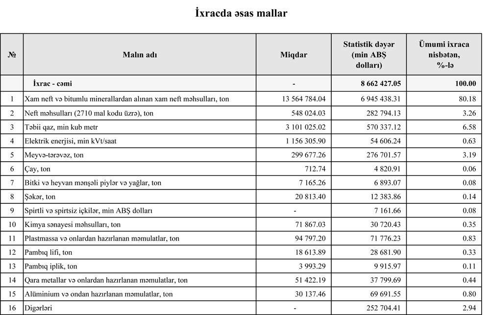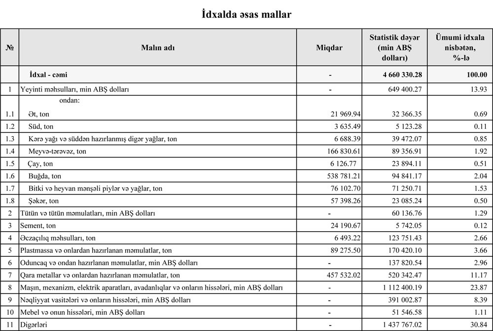Azərbaycanın ən çox idxal və ixrac etdiyi mallar