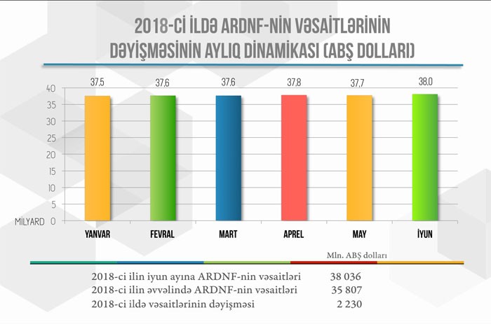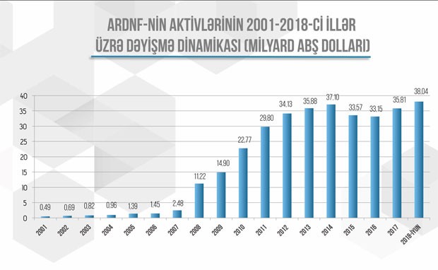 Bu il iyulun 1-nə olan vəziyyətə görə, Azərbaycan Dövlət Neft Fondunun (ARDNF) investisiya portfeli onun aktivlərinin 99,3%-i qədər və 37 milyard 770 milyon ABŞ dolları təşkil edib.