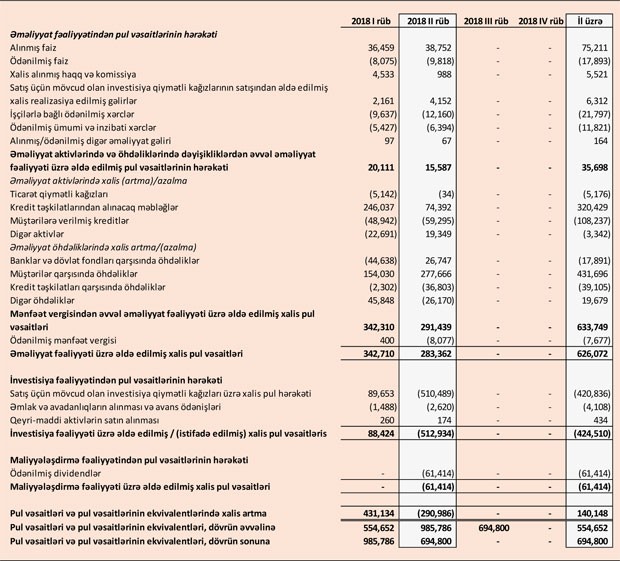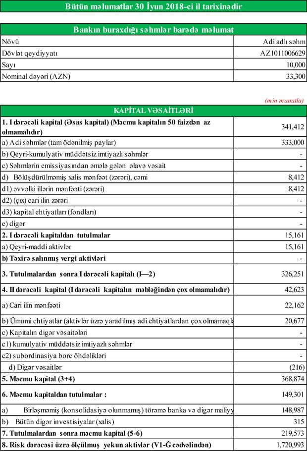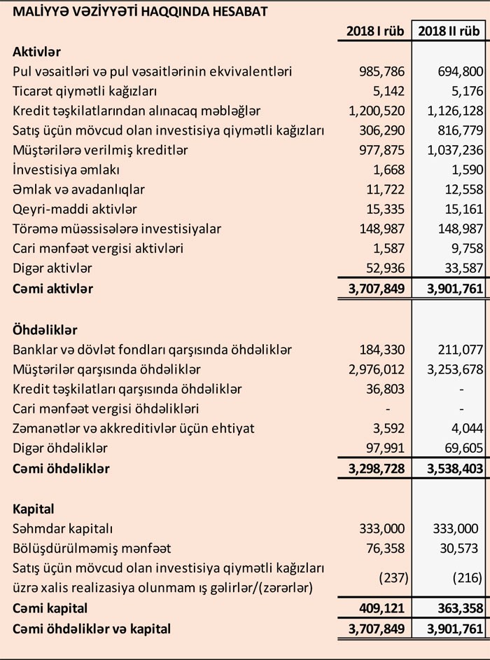 Ötən ilin sonunda 943 milyon 99 min manat olmuş kredit portfeli (müştərilərə verilmiş kreditlər) 30 İyun 2018-ci il tarixində 1 milyard 37 milyon 236 min manata çatıb.