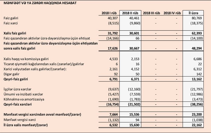 “Marja” Bankın yerli standarlar əsasında hazırlanmış hesabatına istinadən xəbər verir ki, cari ilin birinci rübündə 6 milyon 532 min manat təşkil etmiş xalis mənfəət, ikinci rübdə 15 milyon 630 min manata yüksəlib.