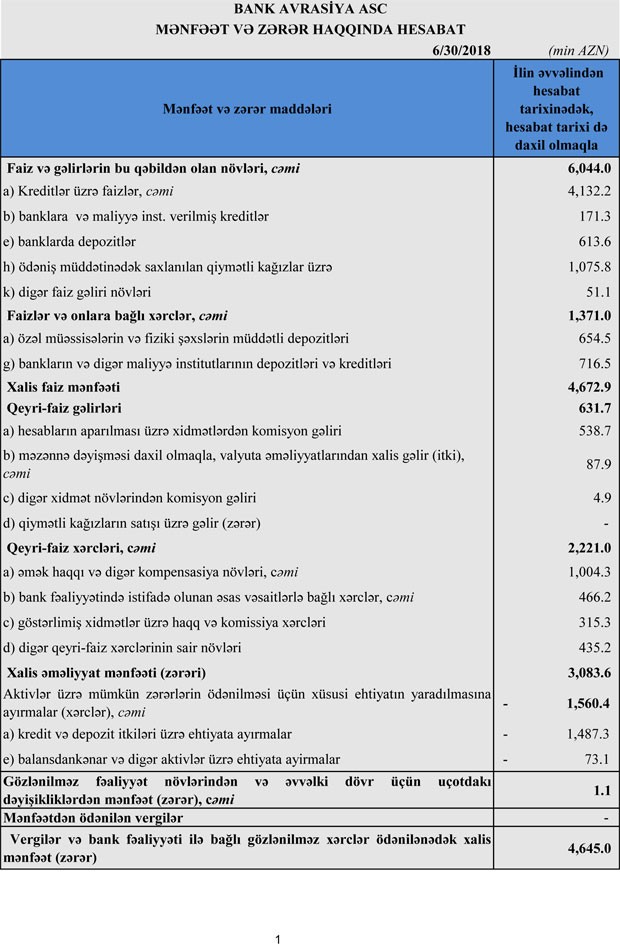 “Bank Avrasiya” ASC 2018-ci ilin birinci yarısını 4 milyon 645 milyon manat xalis mənfəətlə başa vurub. Halbuki Bank, 2017-ci ilin birinci yarısını 8,9 milyon manat xalis mənfəətlə bağlamışdı (1,9 dəfə azalma).