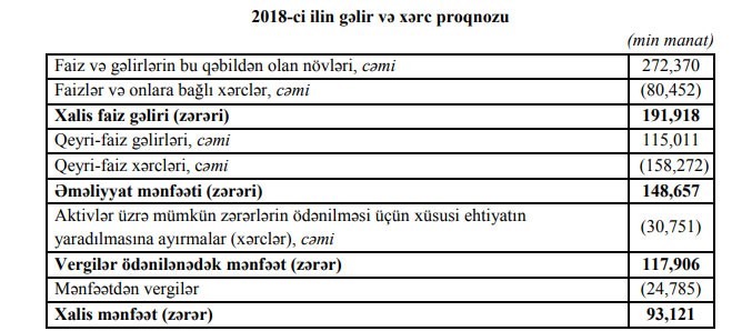 “Marja” Bankın yeni imtiyazlı səhmlərinin Emissiya Prospektinə istinadən xəbər verir ki, “Kapital Bank” 2018-ci ildə 272 milyon 370 min manat faiz, 115 milyon 11 min manat qeyri-faiz gəliri əldə edəcəyini gözləyir. Xərclər çıxıldıqdan sonra əməliyyat mənfəətinin 148 milyon 657 min manat olacağı, aktivlər üzrə mümkün zərərlərin ödənilməsi üçün xüsusi ehtiyatın yaradılmasına 30 milyon 751 min manat ayrılacağı, 24 milyon 785 min manat mənfəət vergisi ödəniləcəyi ehtimal edilir.