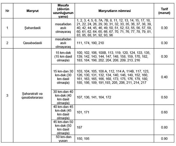 Avtobuslarda yeni qiymətlər açıqlandı - CƏDVƏL