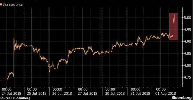 Xəbərdən sonrası dollar dünən saat 20:30-da 5.0157 Türk lirəsinə qədər qalxaraq tarixi rekord səviyyəyə çıxmışdı. Məzənnə, Cümə gününə yüngül geriləmə ilə başlamasının ardından yenidən yüksəlişə keçib və saat 11:25-də 5.0680 səviyyəsini görüb. Bu səviyyə yeni rekorddur. Bu gün Türk Lirəsi Dollar qarşısında 1,5% də dəyərdən düşüb.