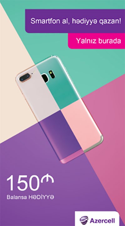 Bərdə Ekslüziv mağasasının açılışı ilə əlaqədar 7-13 avqust tarixlərində həmin mağazadan yeni Smartfon alan hər bir müştəri Azercell nömrəsinin balansına danışıq və internet istifadəsi üçün 150 AZN hədiyyə qazanacaq. Tələsin! Hədiyyəli Smartfonların sayı məhduddur!