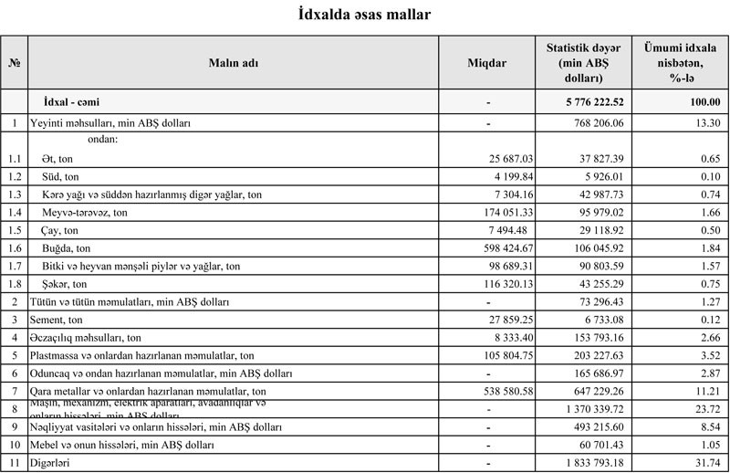 Azərbaycanın ən çox idxal və ixrac etdiyi mallar