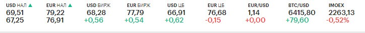 ABŞ-ın Rusiyaya qarşı yeni sanksiyalar tətbiq etməyə hazırlaşdığı barədə xəbərlər fonunda, avqustun 13-də də hərraclarda Rublun ucuzlaşması davam edib. Hərraclarda Dolların məzənnəsi 68 rublu, Avronun məzənnəsi isə 77 rubl həddini keçib.