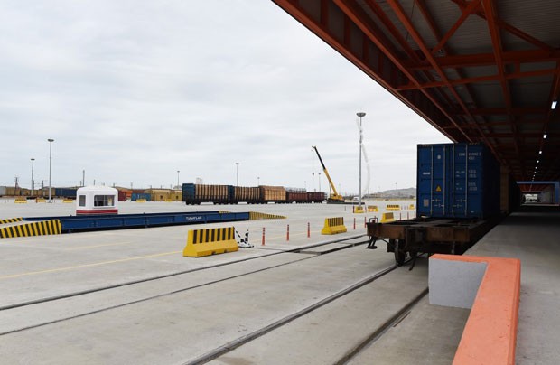 Mərkəzdə 6-sı qatar qəbulu, 2-si konteyner, 2-si açıq yük və 2-si anbar sahələrinə boşaltma və yükləmə xətləri olmaqla, ümumilikdə 12 kilometr uzunluğunda dəmir yolu xətti var. Müəssisədə illik yükaşırma qabiliyyəti 3,5 milyon ton olan terminal vasitəsilə idxal, ixrac və tranzit yüklərin daşınması da icra olunacaq.