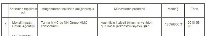 "Marja" xəbər verir ki, müqavilənin dəyəri 12 milyon 96 min 606 manat təşkil edir.