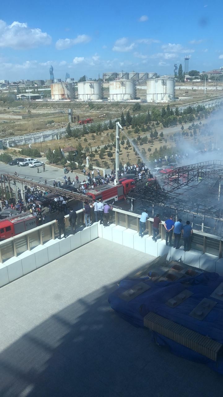 Hadisə şahidlərinin verdiyi məlumata görə, hazırda yanğınsöndürənlər yanğının qarşısını almağa çalışır.