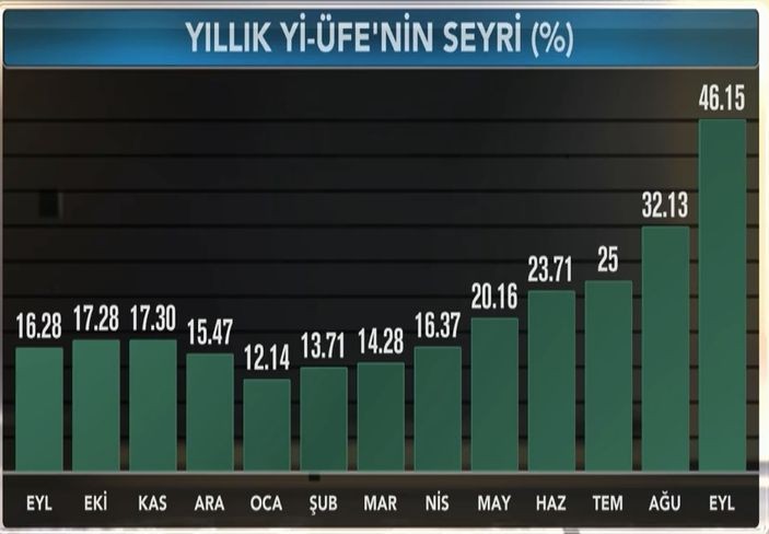 Sentyabrda istehsalçı qiymətləri indeksi (istehsalçı inflyasiyası) isə aylıq 10.88%, illik 46.15 % artıb.