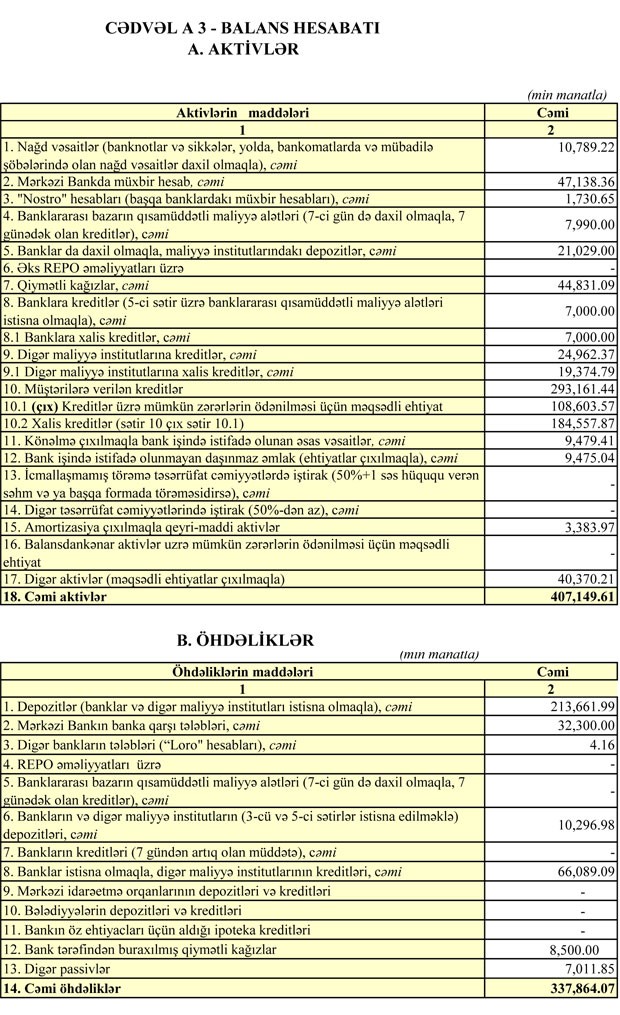Bankın böyük məbləğdə zərər etməsi gecikmədə olan kreditlərə görə ehtiyatın yaratması ilə bağlıdır. Müştərilərə verilmiş kreditlərin müəyyən hissəsinin bata biləcəyi ehtimal edilir. Ehtimal reallaşmasa ehtiyatlara ayrılan vəsait gəlirə əlavə ediləcəkdir.