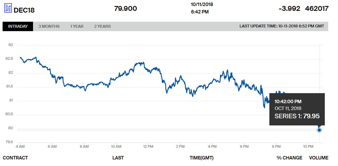 Brent neftinin qiymıəti ötən həftə 86 dolları keçmişdi. Bu səviyyə ilə müqayisədə ucuzlaşma 7%-ə yaxınlaşır.