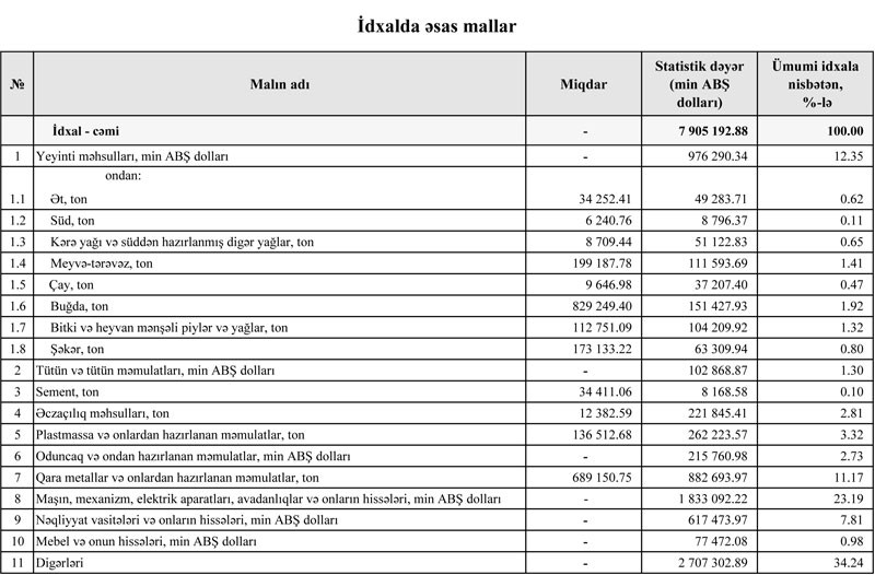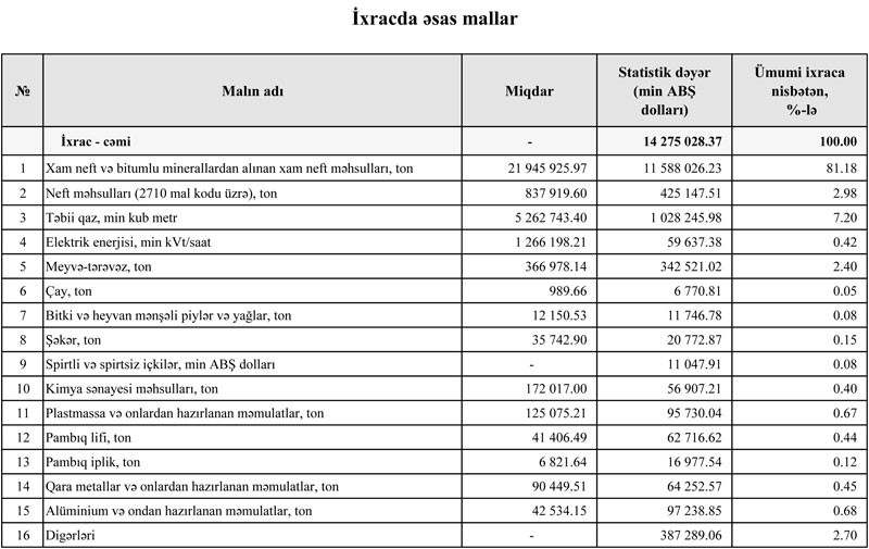 "Marja" Dövlət Gömrük Komitəsinin hesabatına istinadən təqdim edir.
