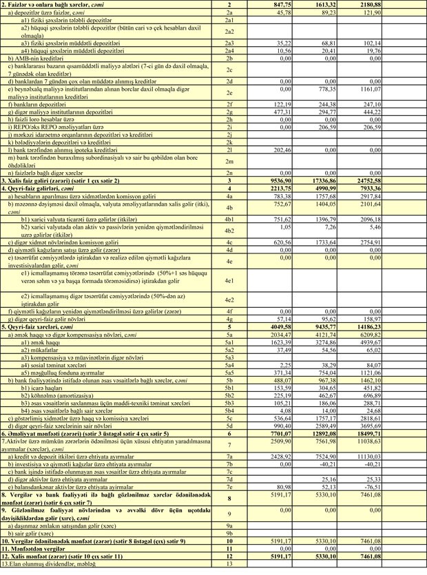 Bankın faiz gəlirləri, əməliyyat mənfəəti artıb, ehtiyatlara ayırması azalıb.