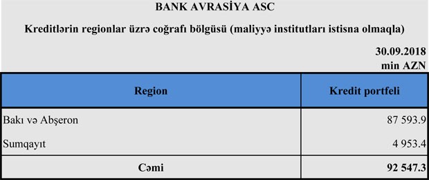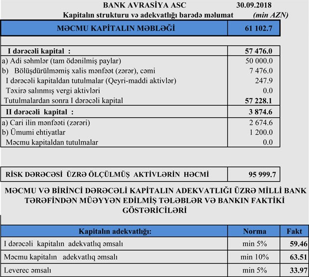 "Bank Avrasiya" 61 milyon 102 min manat məcmu kapitala malik olub.