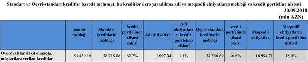 Müqayisə üçün qeyd edək ki, Bank ötən ilin 9 ayında ehtiyatlardan 4 milyon 812 min manatı mənfəətə əlavə etmişdi (azad olmuşdu). Buna görə, Bankın xalis mənfəəti 10 milyon 990 min manat təşkil etmişdi. Ehtiyatlara ayırmanın yenidən bərpa edilməsi kredit və depozitlərdə risklərinin artdığına işarədir.