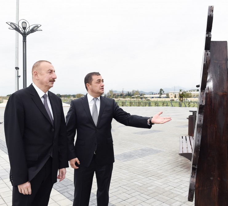 Dövlətimizin başçısı elektromobillə kompleksin ərazisini gəzib.