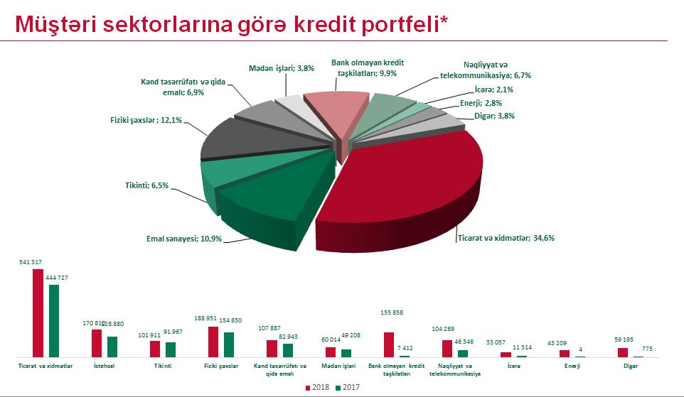 Bankın məcmu kreditləri 30 iyun 2018-ci il tarixinə 1 milyard 566 milyon 498 min AZN məbləğinə çatmışdır. Bu 2017-ci ilin sonu ilə müqayisədə 11% artım deməkdir.