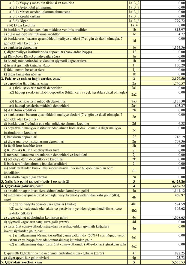 Bank 4 milyon 358 min manat əməliyyat mənfəətinin 2 milyon 516 min manatını kredit və depozit itkiləri üzrə ehtiyata ayırıb. Eyni zamanda, Bank 237 min manat mənfəət vergisi ödəyib.