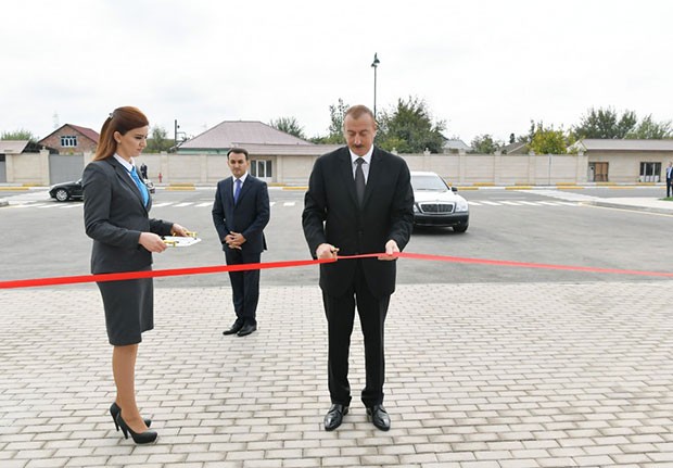 Dövlətimizin başçısı kompleksin rəmzi açılışını bildirən lenti kəsib.