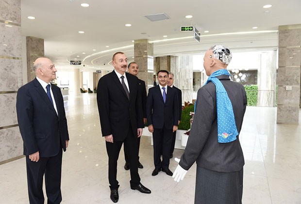Prezident İlham Əliyev mərkəzdə innovativ yeniliklərlə tanış oldu. “Sofiya robotu” dünyada ilk süni intellektli humanoid robotdur. Bu robot 2015-ci ildə “Hanson Robotiks” şirkəti tərəfindən hazırlanıb və süni intellekt əsasında insanla ünsiyyət saxlaya, fikir mübadiləsi apara bilir. Robotun əsas fərqləndirici xüsusiyyətlərindən biri də insana məxsus 60-dan çox emosiyanı əks etdirməsidir. “Sofiya robotu” bu günə qədər dünyada bir çox məşhur simalarla görüşüb, tanınmış televiziya kanallarında, xəbər proqramlarında və tele-debatlarda iştirak edib.