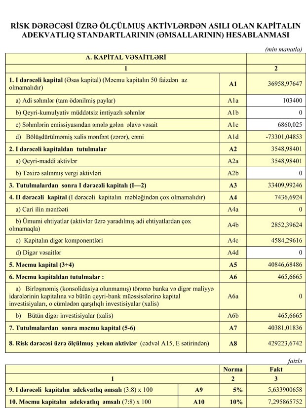 Zərər “AG Bank”ın kapitalını silməkdə davam edib. Bankın cəmi balans kapitalı ötən ilin sonundakı 47 milyon 174 min manatdan 42 milyon 18 min manata, məcmu kapitalı isə 44 milyon 572 min manatdan 40 milyon 381 min manata düşüb. Bankın yığılmış zərəri 73 milyon 301 min manata çatıb.