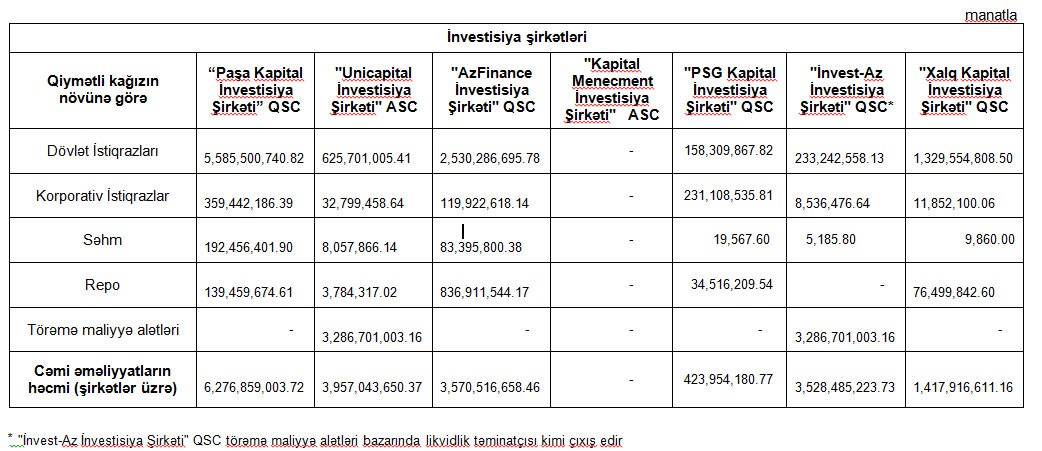 İnvestisiya şirkətlərinin dövriyyələri açıqlandı
