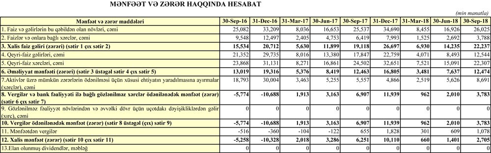 Bankın faiz xərcləri 41%, qeyri-faiz xərcləri isə 9% azalıb.
