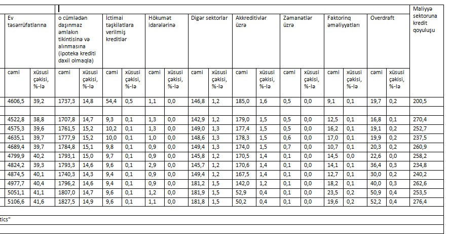 -Kənd təsərrüfatı və emala verilən kreditlər 39 milyon manat artaraq 468 milyon manata çatıb;