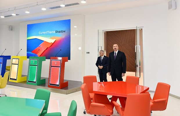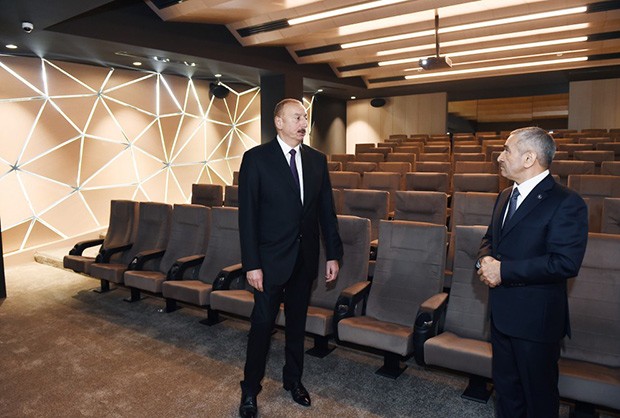Sonra Prezident İlham Əliyev Gənclər Mərkəzinin rəmzi açılışını bildirən lenti kəsdi və burada yaradılan şəraitlə tanış oldu.