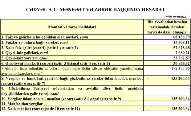 Bankın faiz gəlirləri illik müqayisədə 66 milyon 682 min manatdan 68 milyon 137 min manata, qeyri-faiz gəlirləri isə 3 milyon 66 min manatdan 7 milyon 689 min manata qalxıb.