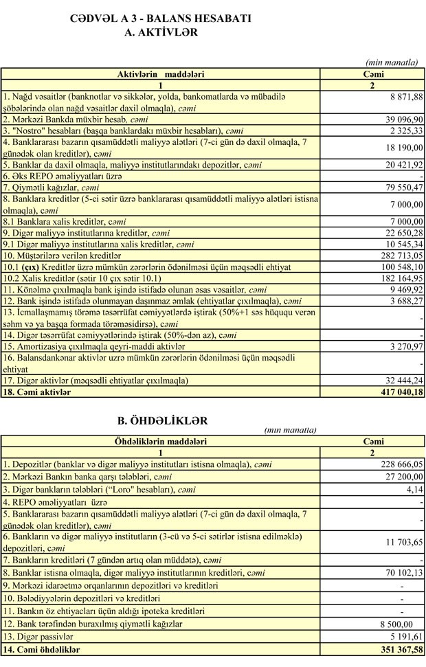 İllik müqayisədə Bankda depozitlər cüzi azalaraq 229 milyon 225 min manatdan 228 milyon 666 min manata düşüb.