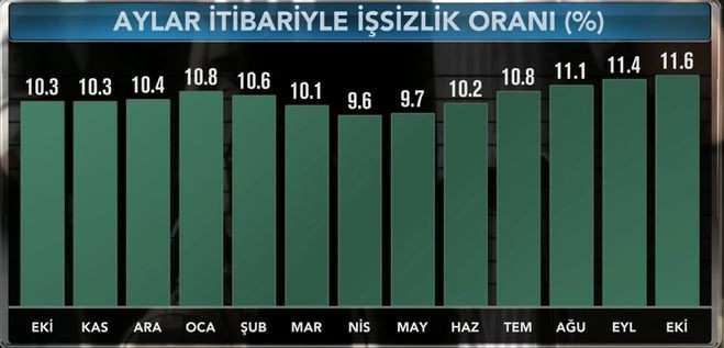 "Marja" Türkiyə mətbuatına istinadən xəbər verir ki, işsizlik nisbəti 1,3 bənd artım ilə 11,6% səviyyəsinə qalxıb. Bu, 2017-ci ilin Mart ayından bəri ən yüksək səviyyədir.